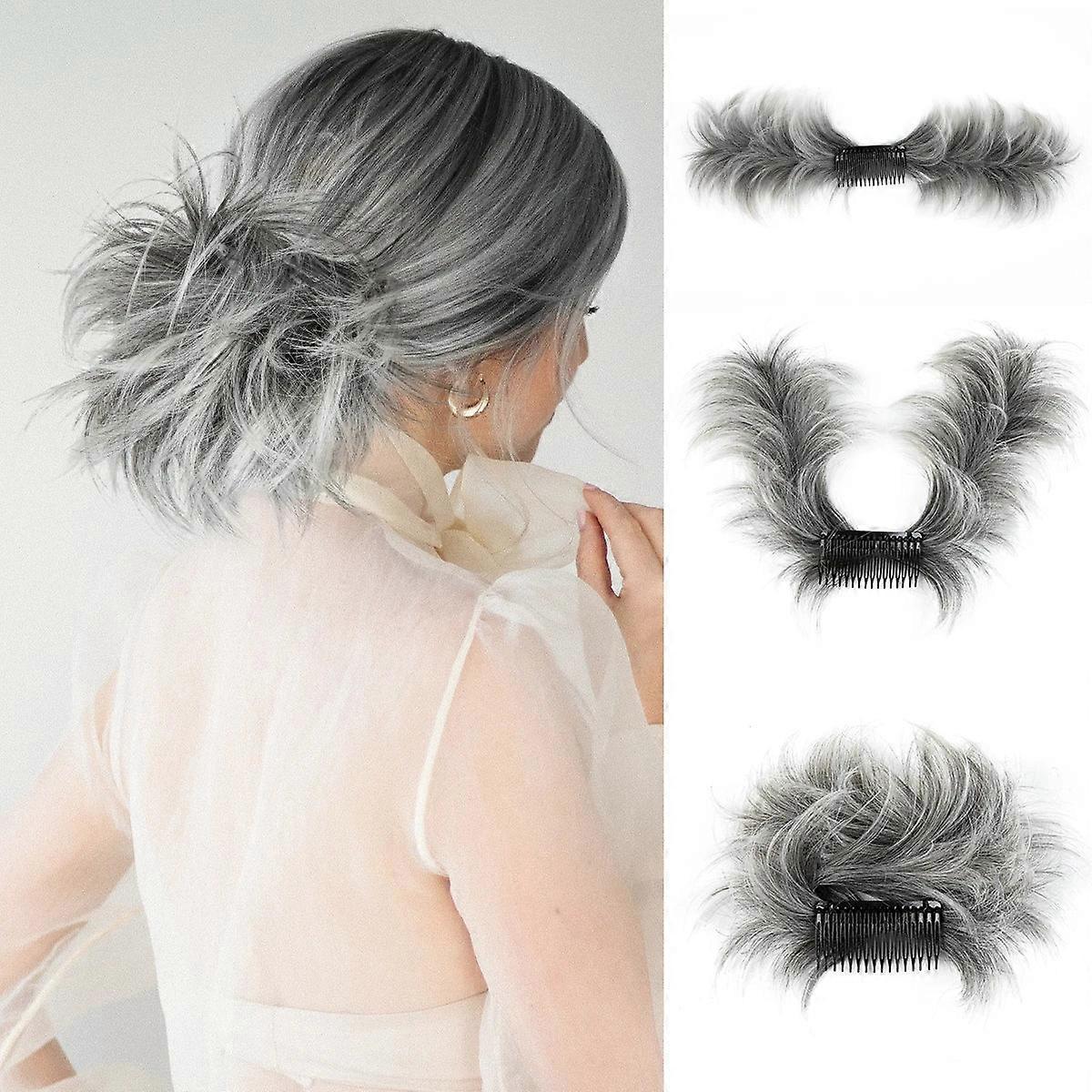 Synthetic Messy Hair Bun Extensions - Clip-in Curly Chignon Scrunchies For Updo