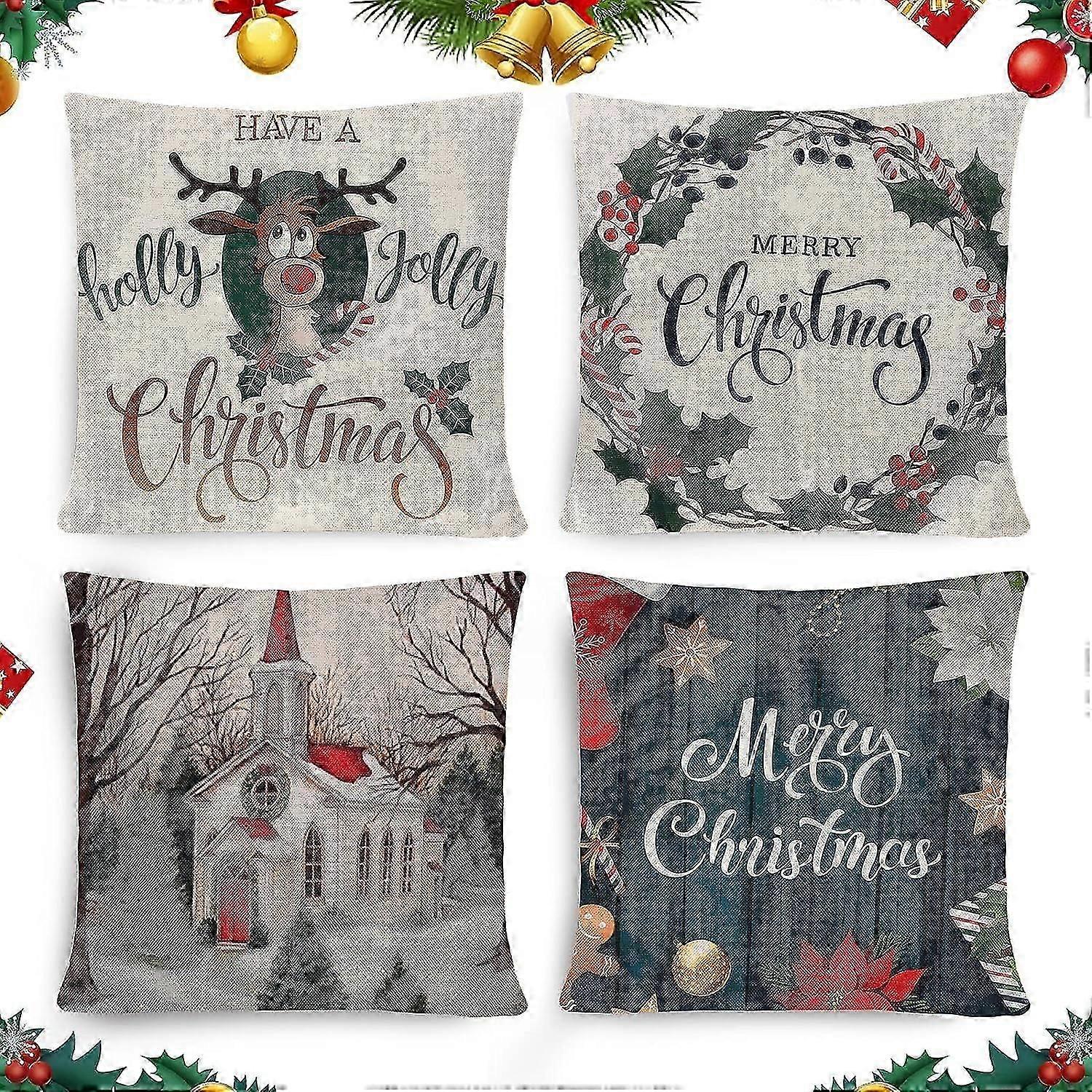 SZTXJ 4 pcs Christmas Pillow Covers, Christmas Pillow Case Cushion, Christmas Cushion Cover, Christmas Decorations Pillow Covers, Christmas Decoration
