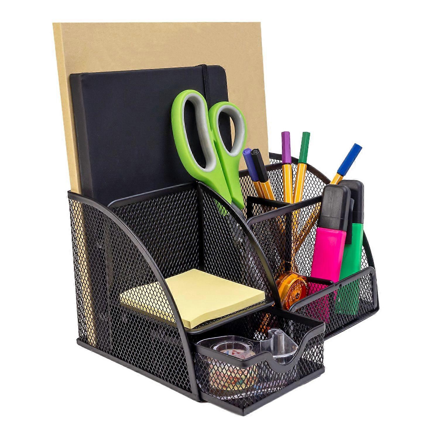 Tisch Organizer aus Eisen Mesh in Schwarz - 22 x 14 x 13 cm - Schreibtisch Organizer mit mehreren Fächern Stiftehalter Box Bürobedarf Zettelhalter Aufbewahrung