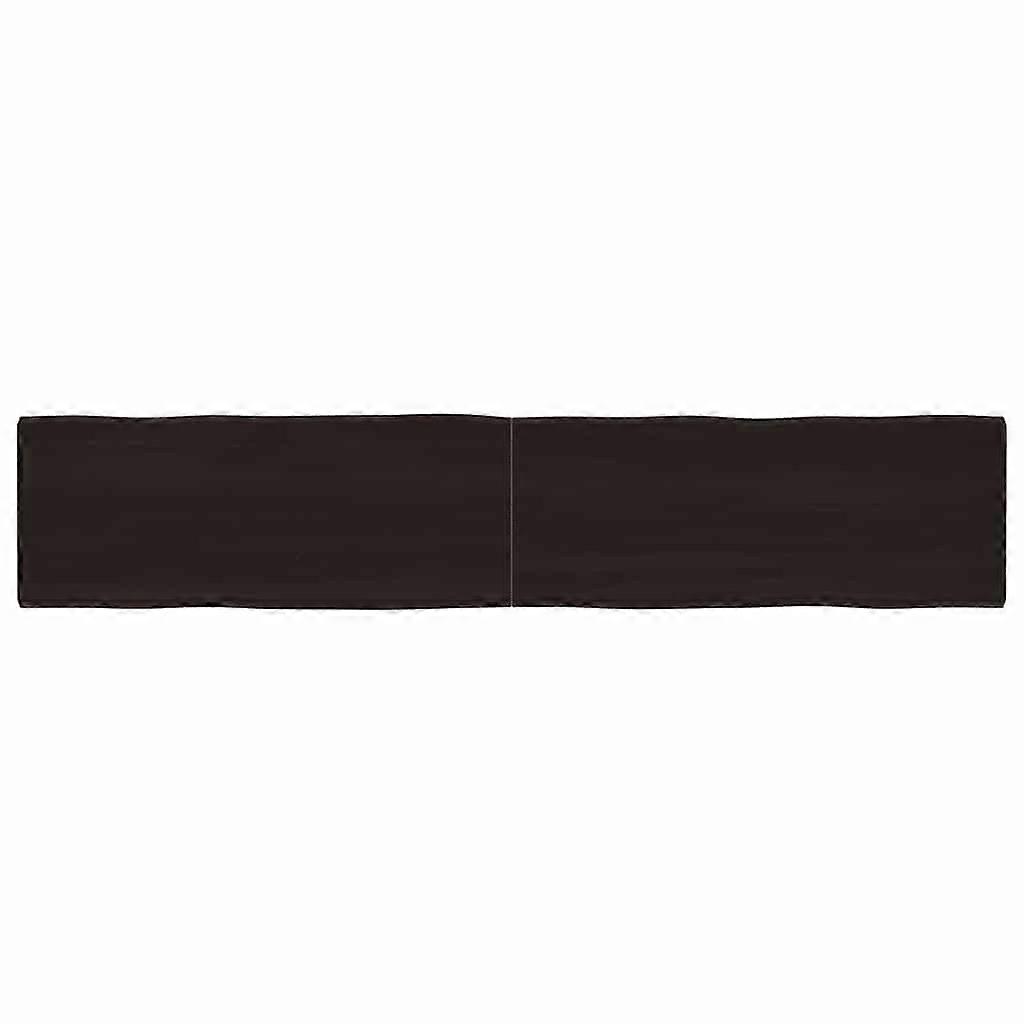 Farbe: DunkelbraunMaterial: Massives Eichenholz mit dunkler OberflächeGesamtabmessungen: 200 x 40 x (2-4) cm (L x B x T)Max. Tragfähigkeit mit Halterung: 32 kgMit 2 langen Seiten-Baumkanten