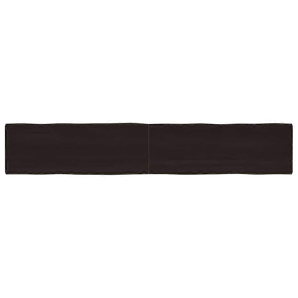 Farbe: DunkelbraunMaterial: Massives Eichenholz mit dunkler OberflächeGesamtabmessungen: 220 x 40 x (2-4) cm (L x B x T)Max. Tragfähigkeit mit Halterung: 35,2 kgMit 2 langen Seiten-Baumkanten