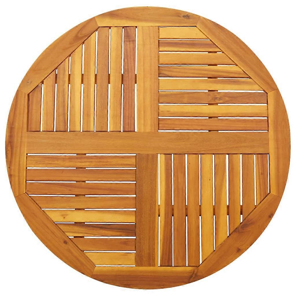 Hauche deinem Gartentisch neues Leben mit dieser Tischplatte aus Holz ein. Sie bietet eine ausgezeichnete Lösung, um deinen Tisch aufzufrischen. Langlebiges Material: Massives Akazienholz ist ein schönes Naturmaterial. Akazienholz ist ein tropisches Hartholz, das dicht, robust und langlebig ist.Vielseitig einsetzbar: Die Ersatztischplatte kann je nach Bedarf mit verschiedenen Untergestellen kombiniert werden.Rustikales Design: Mit ihrem schlichten Design verleiht diese Tischplatte deinem Essbereich eine rustikale Note.Pflegeleicht: Dank ihrer glatten Oberfläche lässt sich die Tischplatte mit einem feuchten Tuch leicht reinigen und erfordert wenig Pflege. Gut zu wissen:Wir empfehlen dir, deine Gartenmöbel mit einer wasserdichten Hülle zu schützen, um lange Zeit eine ansprechende Optik aufzuweisen. Material: Massives Akazienholz mit Naturöl-FinishAbmessungen: 90 x 2,2 cm (Durchmesser x D)Form: RundIm Lieferumfang ist nur die Tischplatte enthalten