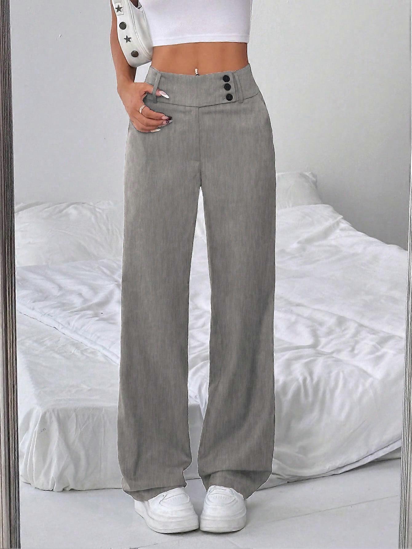 Tall Women's Solid Color Waist Button Design Wide Leg Loose Casual Pants
