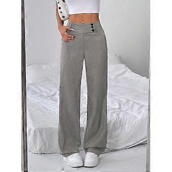 Tall Women's Solid Color Waist Button Design Wide Leg Loose Casual Pants