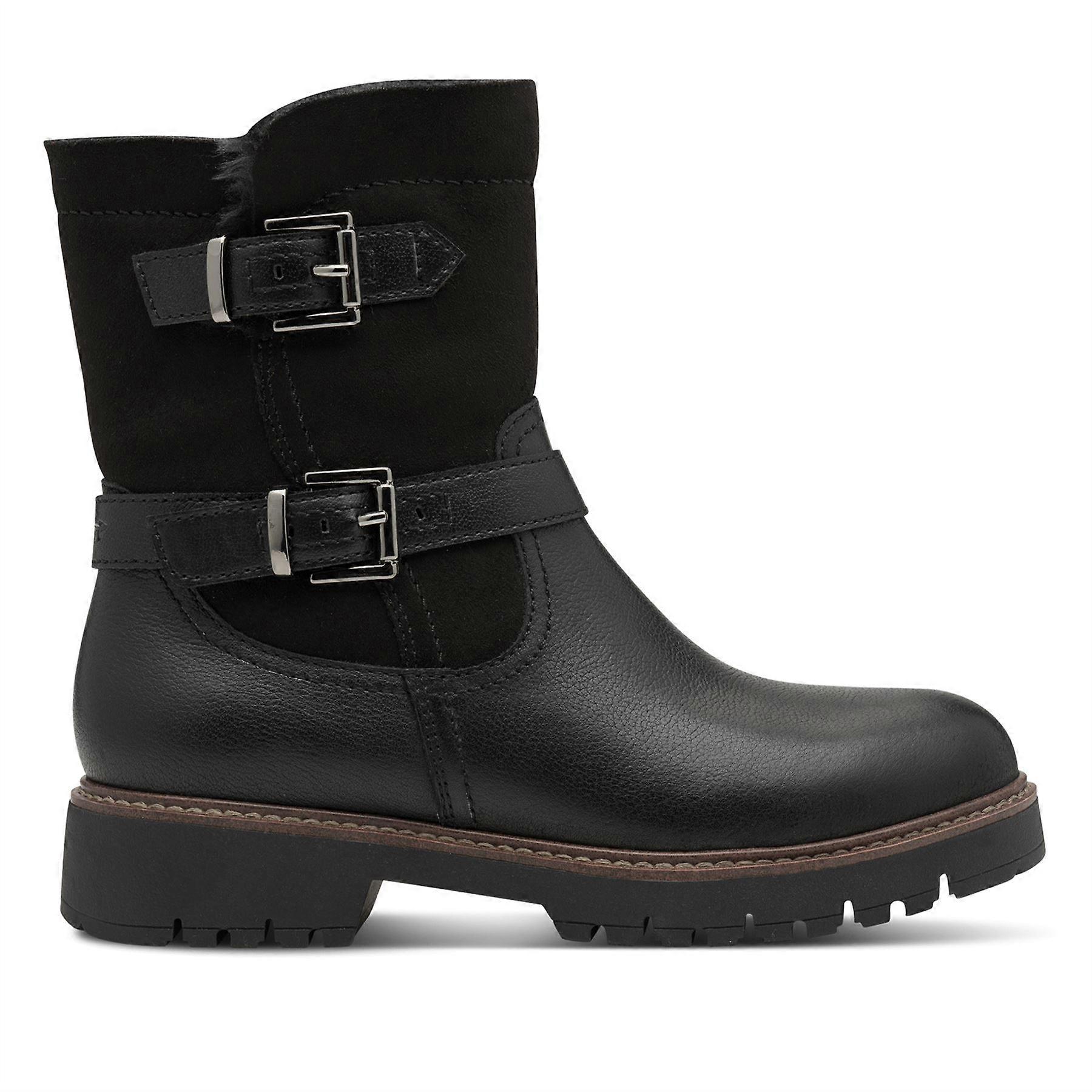 Tamaris Womens Winter Fashion Black Leather Buckle Zip Heel Fur Biker Ankle Boots