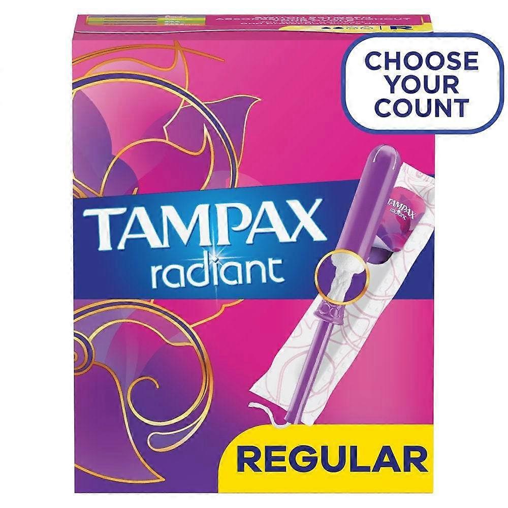 It's a new time for that time of the month. Get up to 100% leak and odor-free protection with Tampax Radiant tampons designed with a LeakGuard Braid to help stop leaks before they even happen. For protection you can feel good about. Free of dyes, perfume, latex, BPA, and elemental chlorine bleaching. Thanks to their Textured Grip, they are specifically designed for incredibly comfortable tampon insertion. Plus, they come in a CleanSeal Wrapper created for more ease, more clean, and more hygiene - to help dispose of them wherever you are. Don't settle for less when you can get more. Discover outstanding protection for up to eight hours with Tampax, the