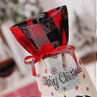 Joulukoriste 2 jouluviinipullopussia Joulun punainen ja musta ruudullinen brodeerattu viinipullo kansi Pöydän koristelu