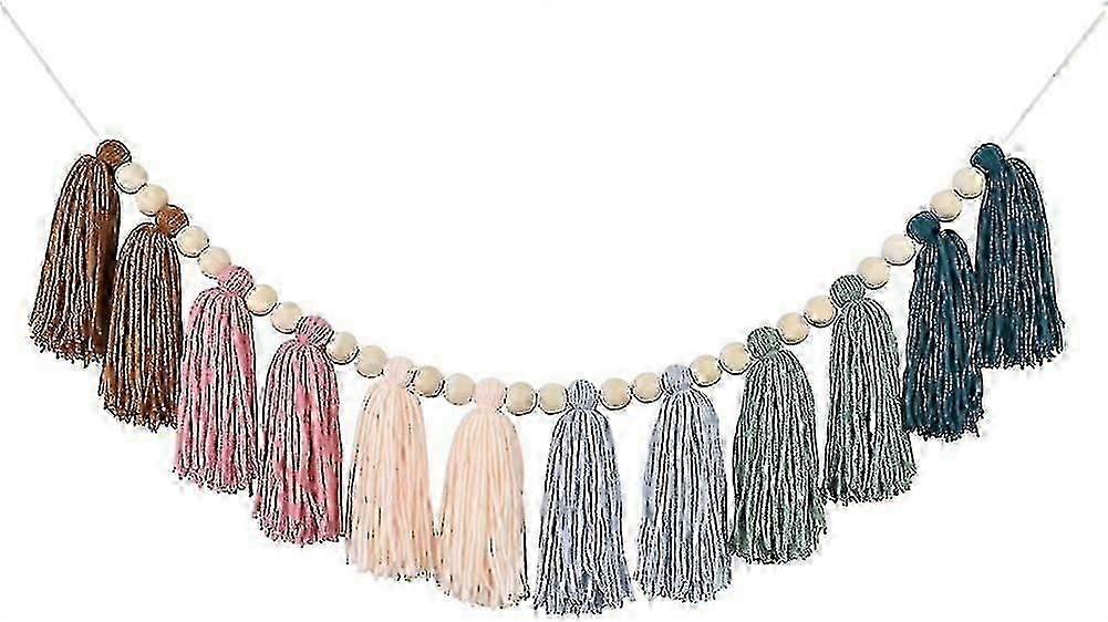 Tassel Garland with Wood Bead Earth Toned Rainbow Garland for Classroom Nursery Gift