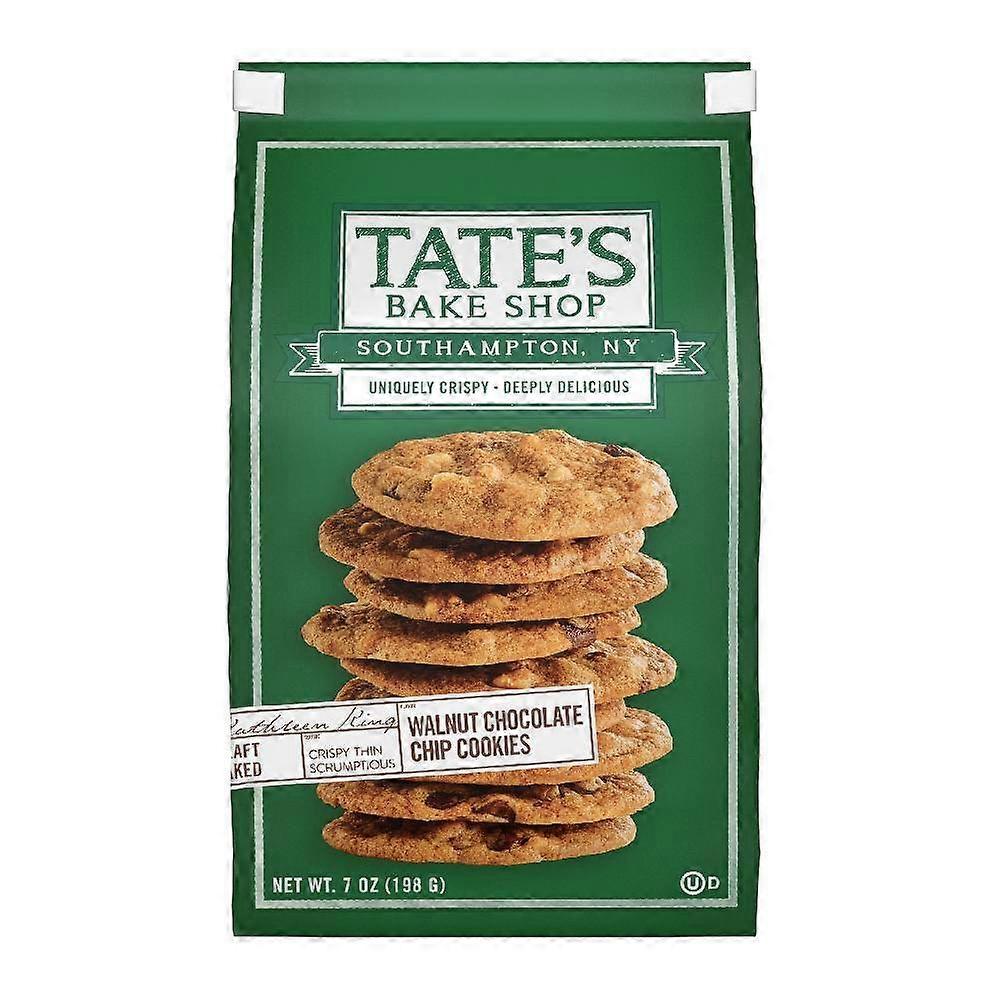 Delicious chocolate chip cookie with walnuts. Thin crispy chocolate chip cookies with nuts are perfect for a quick sweet snack. Tate's Bake Shop chocolate chip cookies with walnuts are uniquely crispy baked cookies unlike other thin crispy chocolate cookies. Add to a cookie tray for easy, sweet party snacks. UPC: 810291001057 Weight: 0.82 lbs