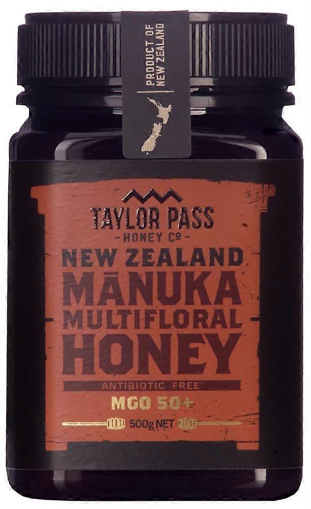 TAYLOR PASS MULTIFLORAL MANUKA HONEY MGO50+ 500g offers a distinctive taste experience, blending the unique qualities of Manuka honey with the rich, diverse flavors of New Zealand bush honey. This dark amber honey is naturally crafted by bees, resulting in a multifloral honey with an intense, bold flavor profile and a complex aroma that is both sweet and woody with spicy undertones, complemented by fresh fruit and citrus notes.Renowned for its natural purity and unique composition, this honey is a versatile addition to your pantry. Its robust flavor makes it ideal for enhancing teas, drizzling over breakfast cereals, yogurt, or toast, and incorporating into gourmet recipes that benefit from a nuanced honey taste. Additionally, it can be used as a natural sweetener in dressings, marinades, or as a soothing remedy for throat discomfort.Produced in New Zealand, this honey embodies the pristine environment and dedicated craftsmanship of Taylor Pass Honey. From the very first taste, it invites you to experience a connection to the land and the natural beauty of New Zealand's native flora. Whether enjoyed as a daily indulgence or a special ingredient, this multifloral Manuka honey adds depth and character to your culinary and wellness routines.