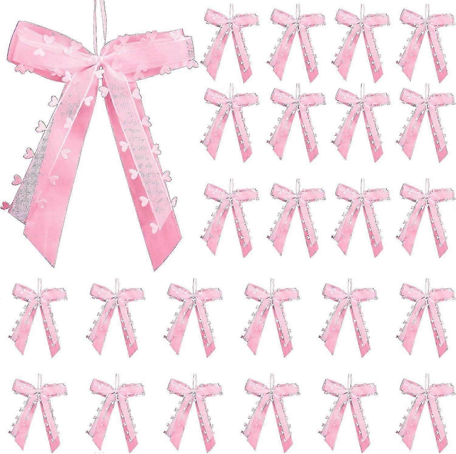TCGG-25 Pcs Christmas Ribbon Bows, Pink Ornaments Ribbon Bow with Heart Christmas Ornaments Ribbon Decorate Christmas Tree for Christmas Party Wedding
