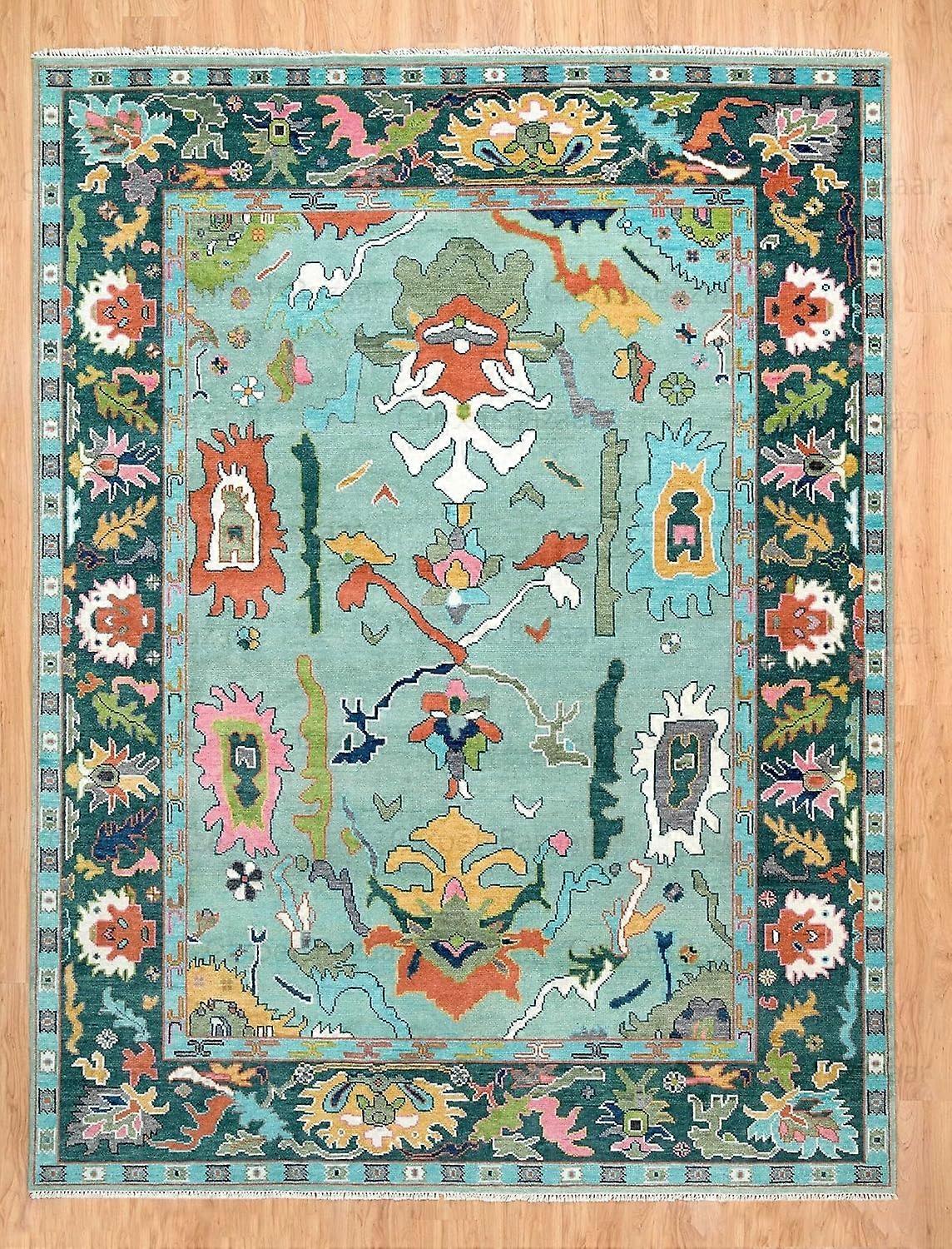 Teal Blue Turkish Oushak Hand Knotted Rug For Bedroom & Living Room