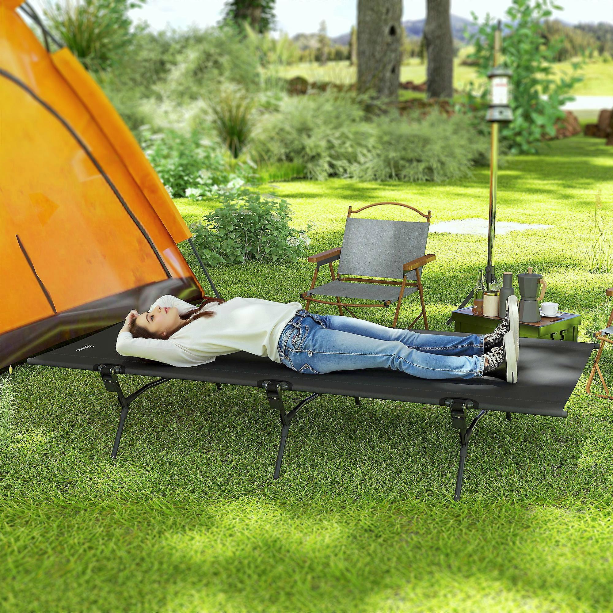 Tältsäng, hopfällbar campingsäng med bärväska, 200 x 100 x 36 cm, gästsäng upp till 120 kg, extra br