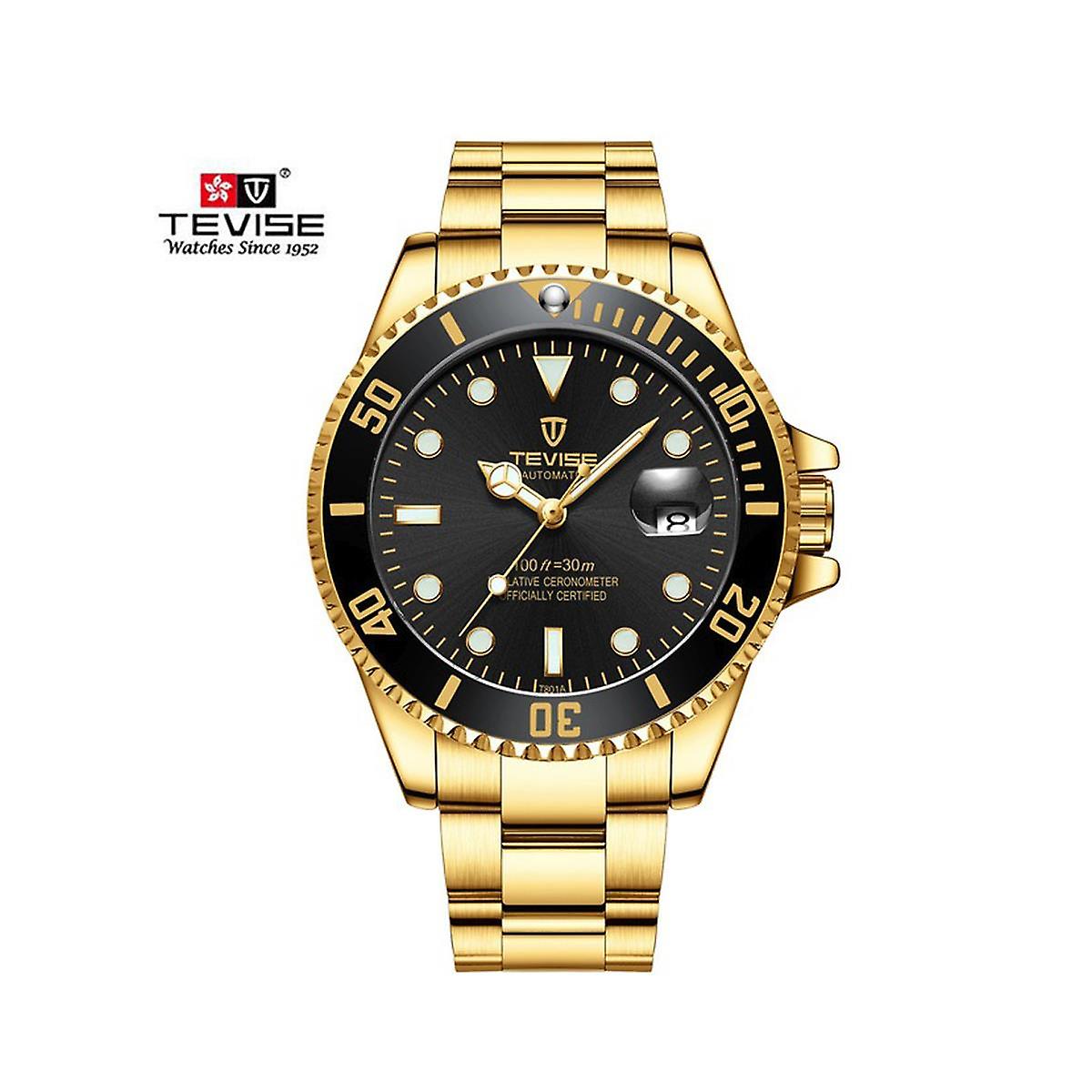 Tevise Mens Homage Analogue Quartz Watch Black Gold Smart Watches Date Present