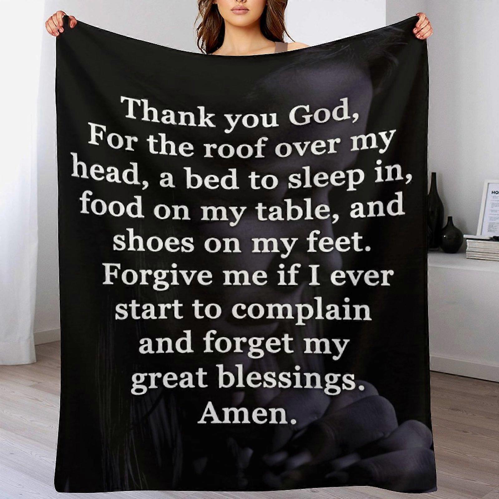 "Thank You God" Gratitude Prayer Print Flannel Blanket - Soft Warm Throw | Faith-Based Gift for Christian Families