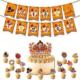 Thanksgiving Decorations-Give Thanks Banner Maple Leaves Cupcake Topper Pumpkin Latex Balloons Fall Harvest Decorations