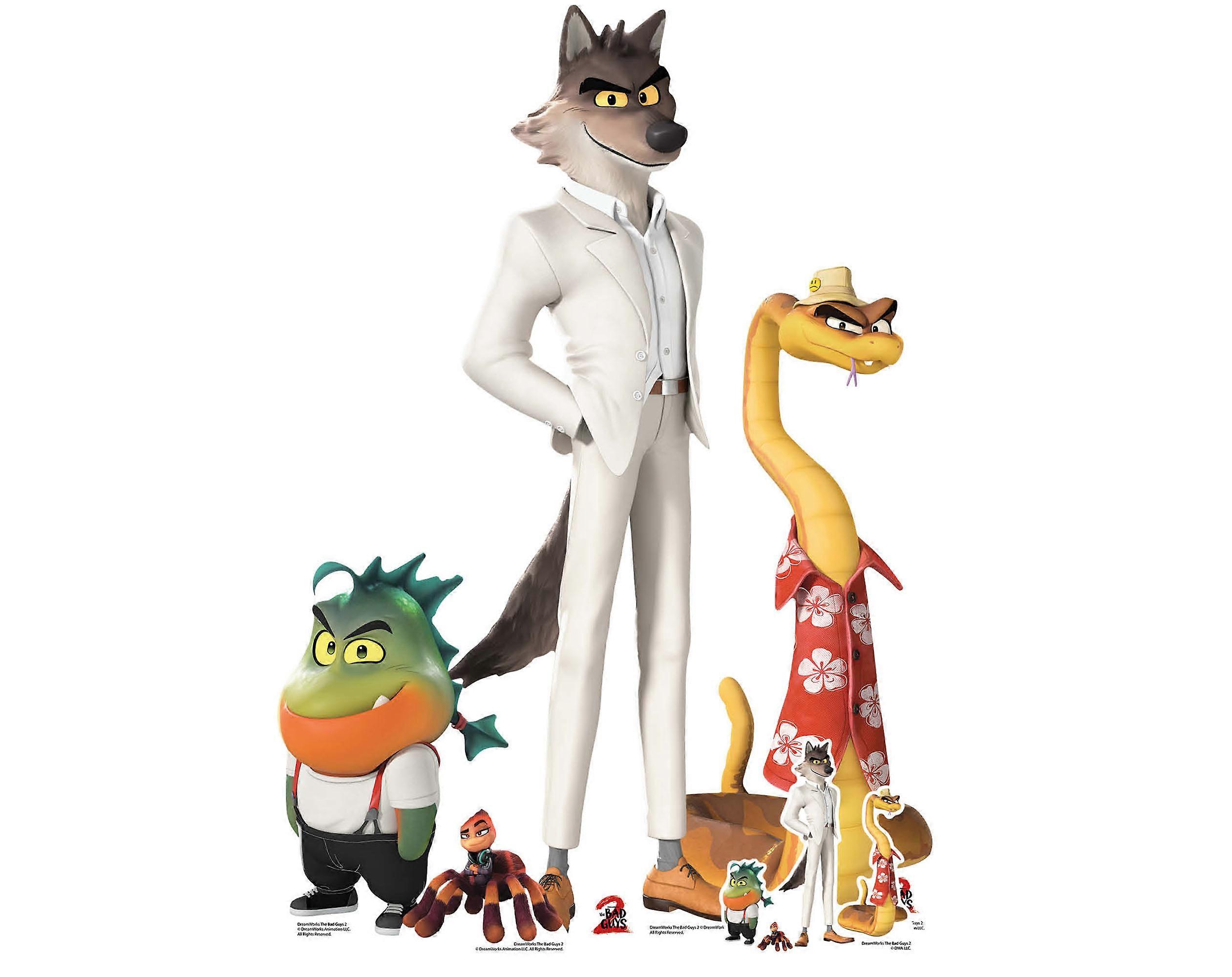 The Bad Guys 2 Party Value Cardboard Cutout Multi Pack of 4 Standees All cutouts are designed to be self supporting and are assembled within seconds. Alternatively it is possible to leave the supports flat and wall mount the standee as you wish. All lifesize standups fold down for easy storage. This set comprises of 5 cardboard cutouts on 4 standees Mr Wolf - 112cm tall  Mr Piranha  Mr Snake Ms. Tarantula Product Features: • Officially licenced UK manufactured product• Includes 4 Free Tabletop cutouts• Manufactured from high quality fluted cardboard• Folds down for easy storage• Perfect for events as well as gifts for fans and collectors• Self-supporting via easel/strut attached to the reverse of the cutout•  Check out more Bad Guys 2 cardboard cutouts in our shop