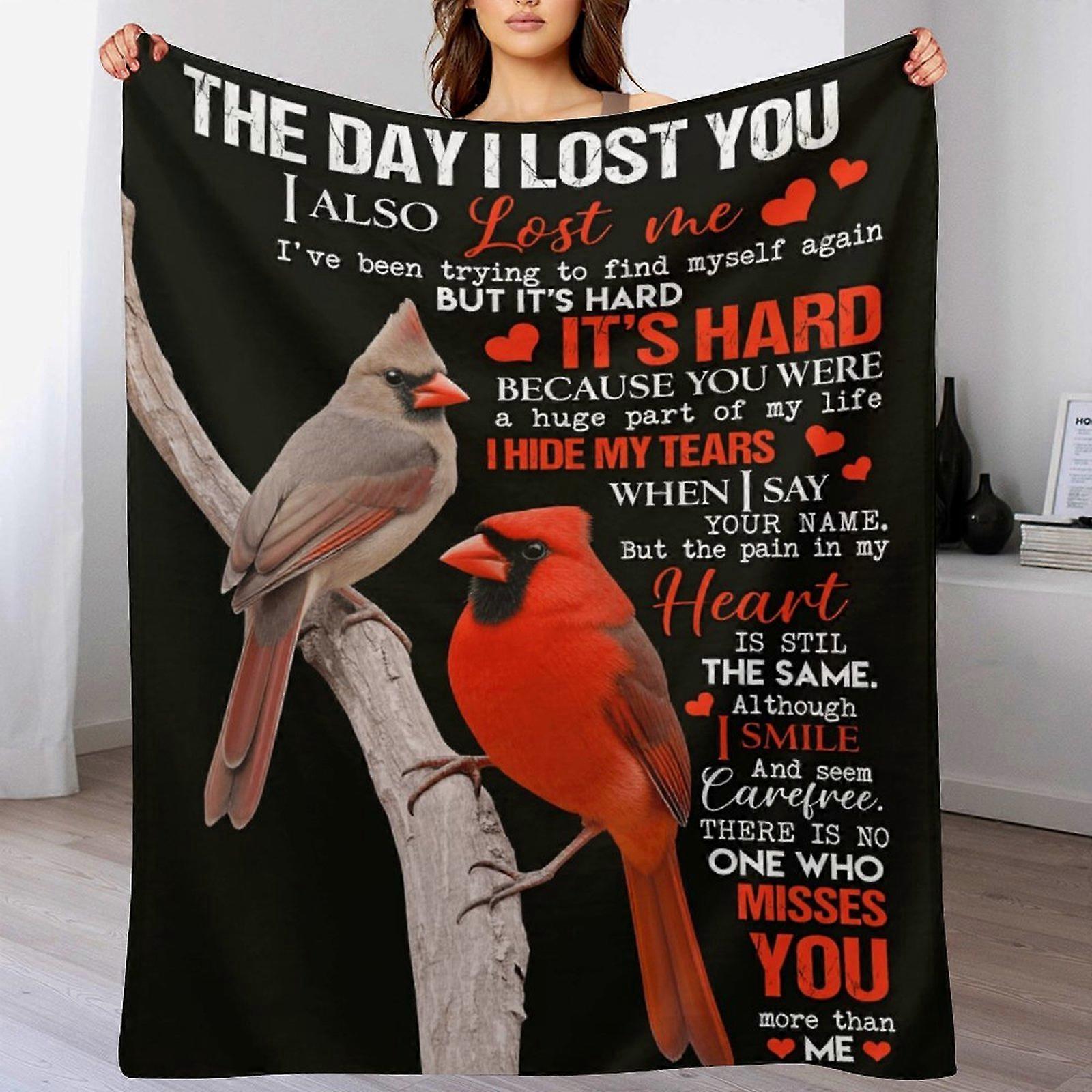 "The Day I Lost You" Cardinal Bird Print Flannel Blanket - Soft Warm Throw | Sympathy Gift for Grieving Individuals