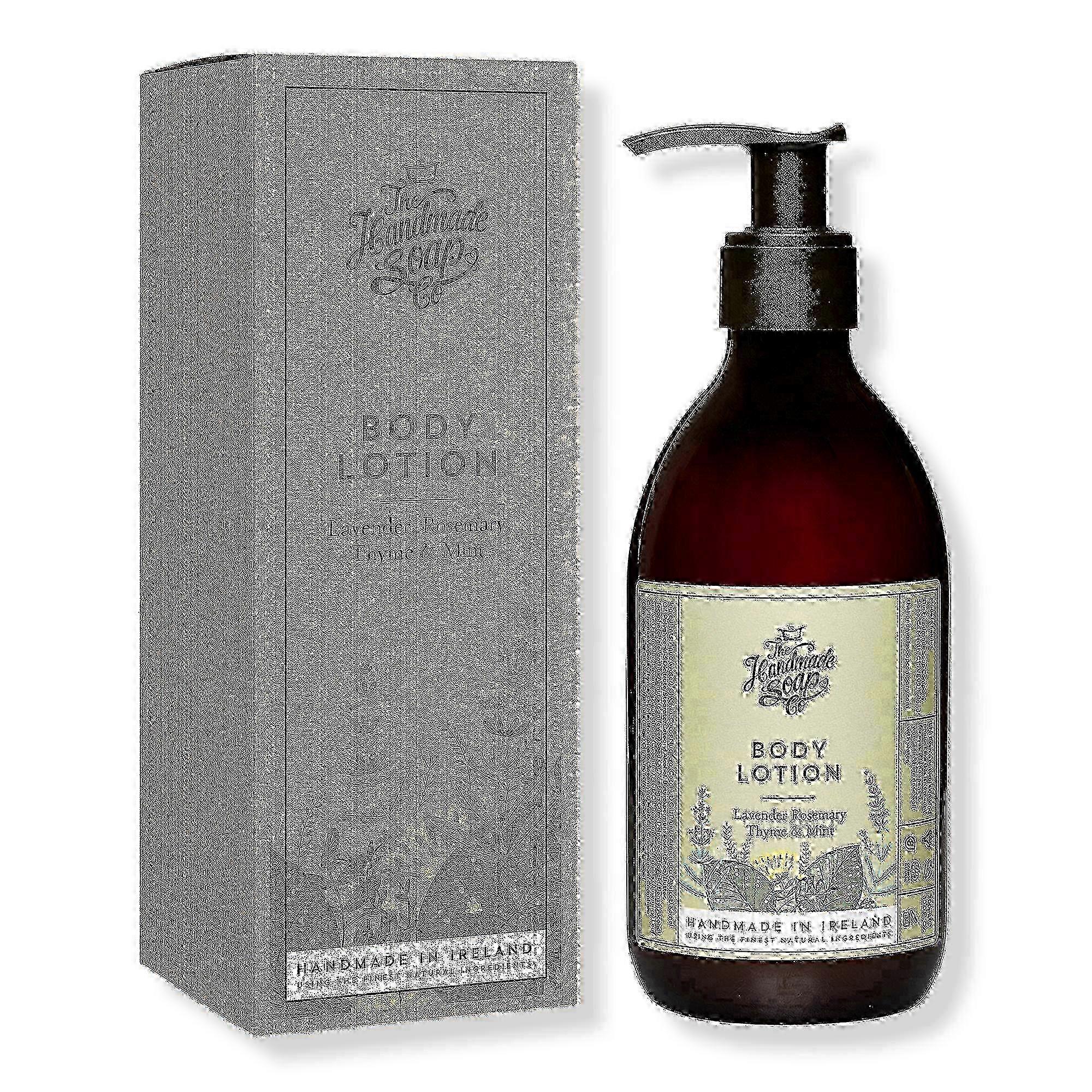 Show your body a little love with The Handmade Soap Co.'s incredibly gentle, wonderfully-natural Lavender, Rosemary, Thyme & Mint Body Lotion.BenefitsUsing only certified natural ingredients, The Handmade Soap Co.'s Lavender, Rosemary, Thyme & Mint Body Lotion enriches and enlivens the skin, with extracts of lavender, rosemary, thyme and mint to restore and refreshIt soaks in easily, leaving soft skin and an amazing fragranceMade from a blend of essential oils and botanical essences, it leaves no residueSuitable for all skin typesFeaturesFree from parabens, SLS, petrochemicals & other syntheticsVegan friendlyNo single-use plastic, this bottle is made from 100% recycled materialsThe box is made from FSC Certified sustainable card from managed forestsActive Ingredients: Perfect for after your shower or bath, morning or night but particularly great for those early mornings. Lotion up with 3-4 pumps starting at your feet and working your way up to help boost circulation. Precautions: Even natural products like these aren't meant for eyes, if it happens to wander in there, rinse well with water.Suggested Use: Show your body a little love with The Handmade Soap Co.'s incredibly gentle, wonderfully-natural Lavender, Rosemary, Thyme & Mint Body Lotion. . .Expiration Date: We have fresh stock each week with exceptional expiration dates prior to APRIL 2024. Products will expire no later than six months to 1 year after receipt.Product Packaging: Please note that some manufacturer may often change their packaging. This product may arrive different from what is pictured. We will always ship the most up-to-date packaging to our customers. Please contact us if you have any questions about this product or would like to request an older version of this product.Healthcare Disclaimer: Content on this site is for reference purposes only. OTC Shoppe Express does not represent or warrant that the nutrition, ingredient, allergen and other product information on our Web or Mobile sites are accurate or complete, since this information comes from the product manufacturers. On occasion, manufacturers may improve or change their product formulas and update their labels. We recommend that you do not rely solely on the information presented on our Web or Mobile sites and that you review the product's label or contact the manufacturer directly if you have specific product concerns or questions. If you have specific healthcare concerns or questions about the products displayed, please contact your licensed healthcare professional for advice or answers.