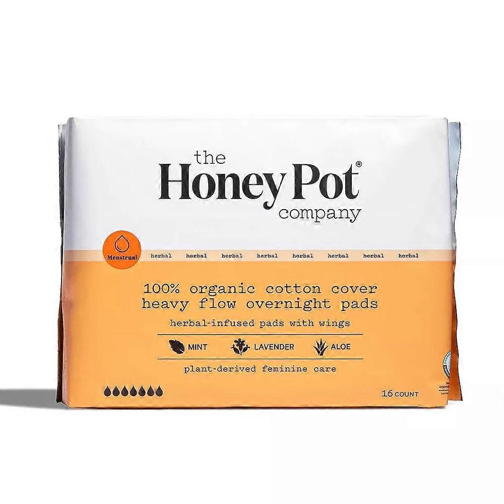 The Honey Pot Organic Cotton Heavy Flow Herbal Overnight Pads, 16 Ea