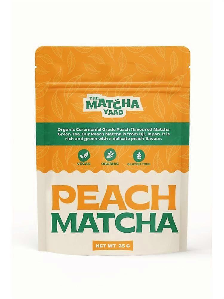 ENERGY, FOCUS & MOODExperience the exceptional quality of organic ceremonial-grade matcha from Japan with The Matcha Yaad Organic Ceremonial Peach Matcha. Crafted to support all-day energy and mental clarity, this exquisite blend combines 100% pure ceremonial-grade Japanese matcha with the luscious sweetness of ripe peaches, delivering a unique and invigorating flavour profile.Perfectly balanced, this Peach Matcha offers a delightful aroma and a smooth, refreshing taste that can be enjoyed hot or cold. Whether you prefer it with a splash of citrus, milk, or as an ingredient in your favourite desserts, it provides a versatile and delicious way to incorporate the benefits of matcha into your daily routine.Rich in antioxidants, this matcha helps combat free radicals, promoting overall health and reducing inflammation. It supports radiant skin and healthy hair while naturally boosting energy levels and enhancing focus, offering a state of calm alertness that keeps you productive throughout the day.Certified organic by JAS, this product comes in a convenient 25g package, with each 1.5g serving equivalent to 16 teaspoons of matcha, ensuring lasting enjoyment and value.Key Benefits: Enhances focus and mental clarity Boosts natural energy levels without jitters Rich in antioxidants to fight free radicals Supports healthy skin and hair Reduces inflammation and promotes overall wellness Delicious peach-infused flavour with a smooth finishUse Cases: Morning or afternoon pick-me-up for sustained energy Refreshing hot or iced beverage Ingredient in smoothies, lattes, or desserts Calming yet energizing drink for work or study sessionsElevate your daily wellness ritual with The Matcha Yaad Organic Ceremonial Peach Matcha a premium, organic blend designed to nourish your body and sharpen your mind.