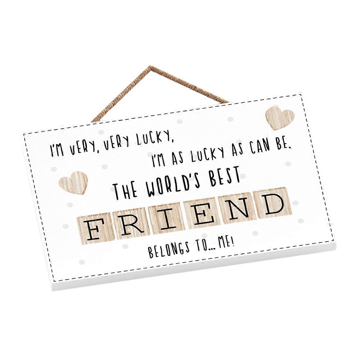 Give Your Bestest Friend The Most Amazing And Meaningful Gift With This Wooden Hanging Plaque From Vivid Squid. This Hanging Plaque Is Made From High Quality Wood And Features A Delightful Design Of Hearts And Spots. Finished With A Lovely Message That Reads "I'M Very, Very Lucky, I'M As Lucky As Can Be. The World'S Best Friend Belongs To Me " Gift This Rustic Hanging Plaque To Your Friend To Thank Them For All Their Love And Support.