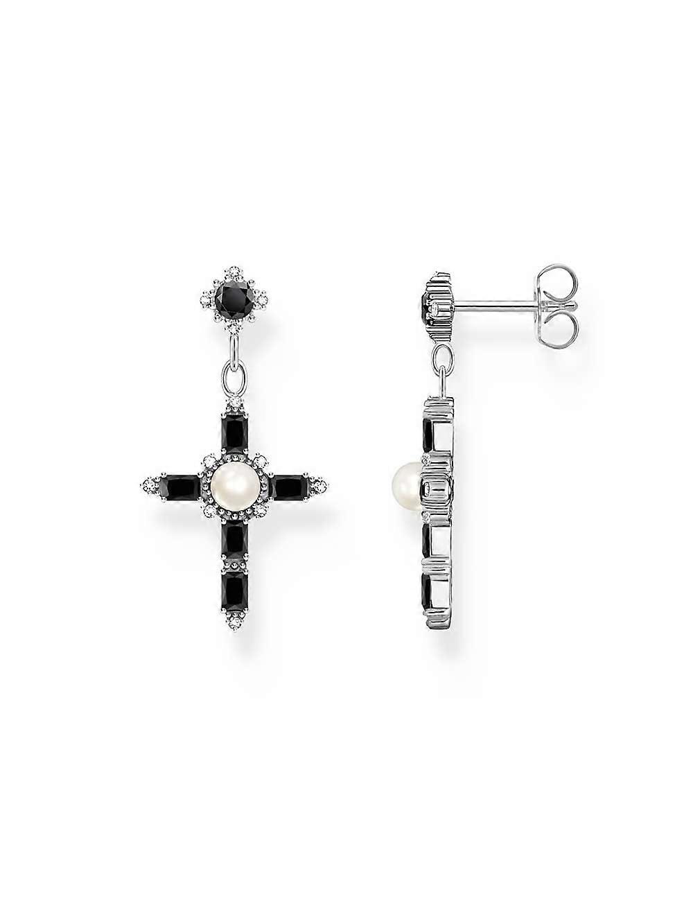 Thomas Sabo H2312-167-11 Silberne Ohrringe Cross Romance schwarz Damen