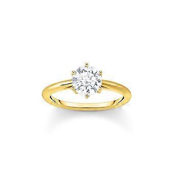 Thomas Sabo TR2474-414-14-56 Gold Plated White Stone Brilliant Cut Ring Women