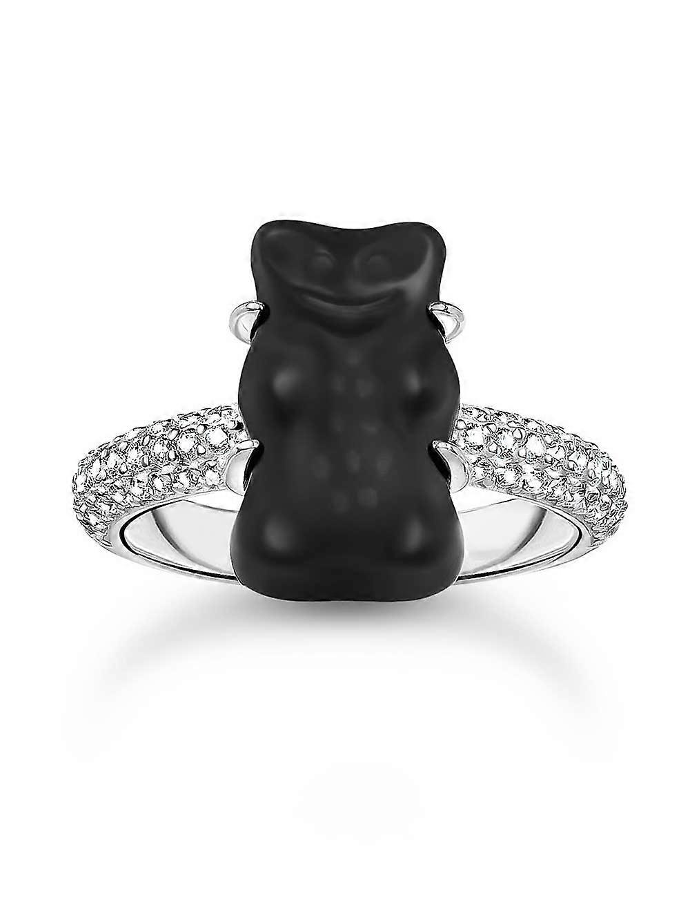 Thomas Sabo TR2478-052-11-56 Silberner Ring mit schwarzem Goldbären und Zirkonia Damen
