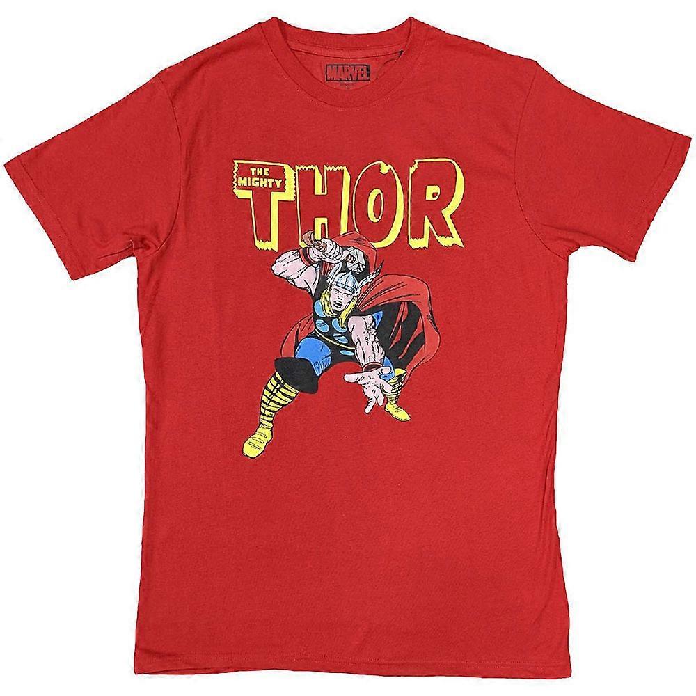 An official licensed Marvel Comics Unisex T-Shirt featuring the 'Thor Hammer' design motif. This high quality T-Shirt is available in a red colourway. Classic fit unisex soft-style cotton tee with crew neck and short sleeves. Comes in a wide range of sizes from Small through XX-Large, subject to availability.