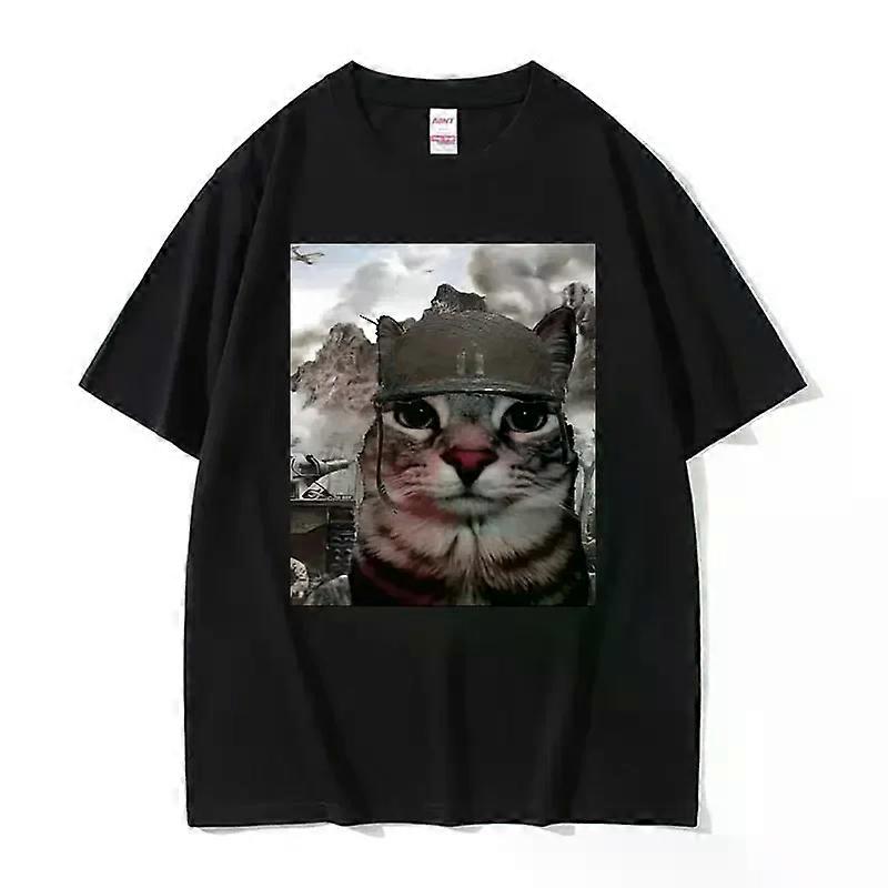 Thousand Yard Stare Funny Cat Meme T Shirts Women's Fashion Casual Short Sleeve T-shirts T-shirt Streetwear