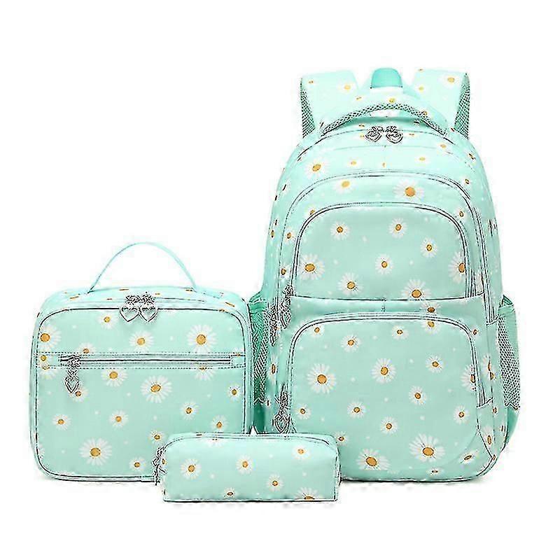 Three Piece Backpack Set With Daisy Print Includes Backpack + Lunch Bag + Pencil Case #green