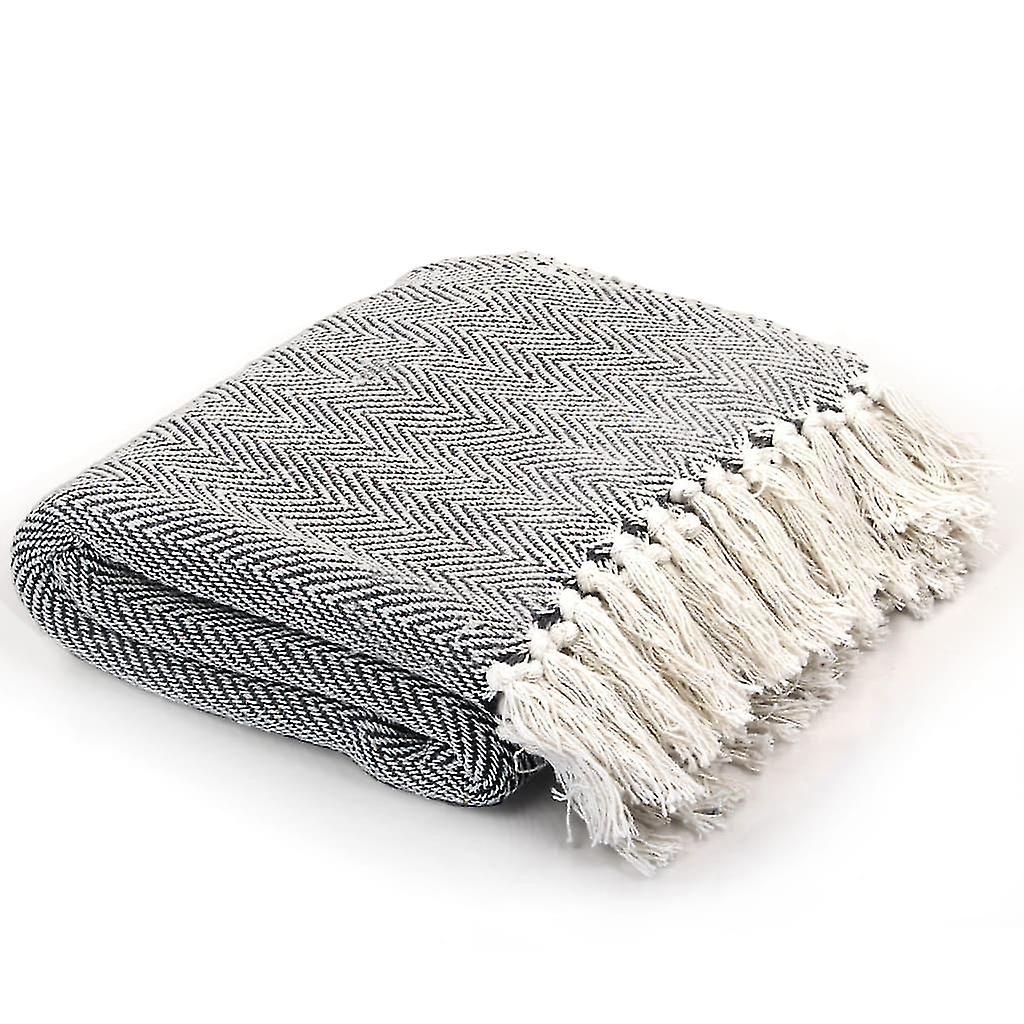 Überwurf Baumwolle Fischgrätenmuster 160x210 cm Marineblau
