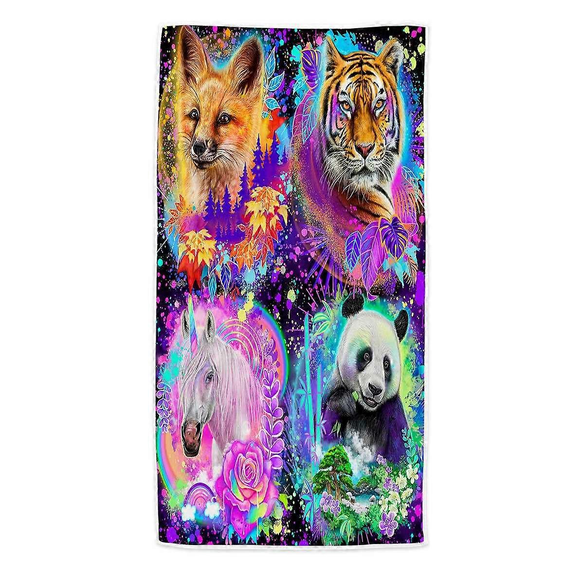 Tiger Fox Panda Unicorn Animal Spirits Collage Microfiber Beach Towel