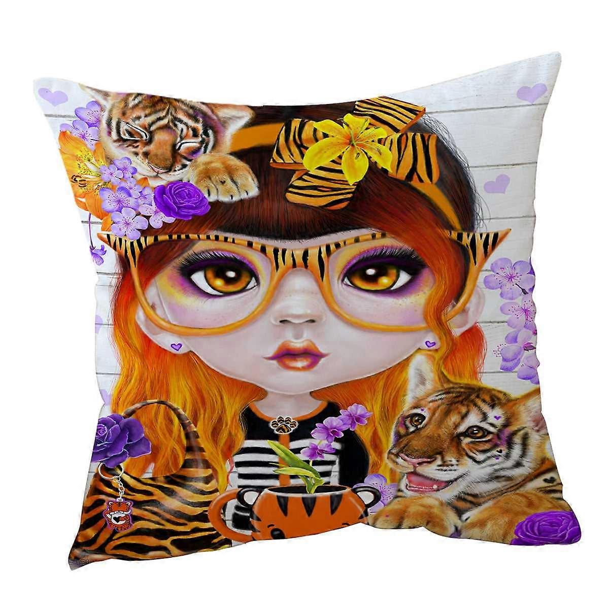 Tiger loving Tessa Munchkinz Girl Cushion Cover