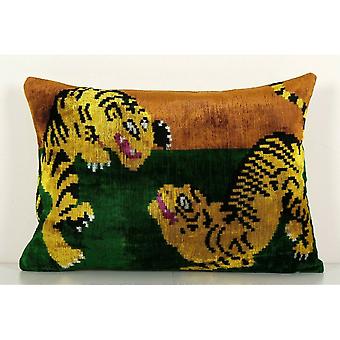 Tiger Silk Ikat Velvet Pillow - Unique Animal Pattern Ethnic Cushion