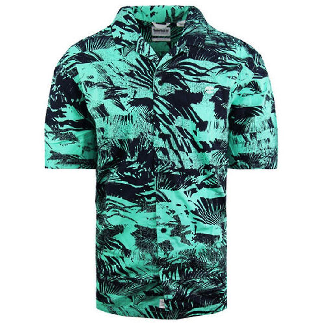 Timberland Stretch Reg Fit Short Sleeve Green Mens Floral Summer Shirt A21A6 AF0