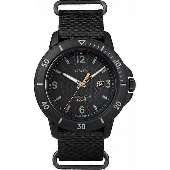 Timex Gents Expedition Black Watch TW2U30300 Discover the perfect blend of durability and elegance with the Timex Gents Expedition Black Watch TW2U30300. Designed for the modern adventurer, this timepiece balances style with practical features. The watch is not just an accessory; it is an essential companion for those who appreciate the outdoors yet crave sophistication in their attire. Attachment Buckle/Clasp Type - BuckleAttachment Colour - BlackAttachment Finish - MatteAttachment Material - NylonAttachment Type - Slip-thru Double LayerCase Colour - BlackCase Finish - Matte / ShineyCase Height - 13 mmCase Lug Width - 22 mmCase Material - ResinCase Shape - RoundCase Width - 44 mmCrystal/Lens - AcrylicDial Colour - BlackDial Luminant Hands - NoDial Markings - Arabic & Markers (Partial)Water Resist - 50 metersMechanism Type - Quartz AnalogWindow (date) - YesFeature 1 - Eco-FriendlyFeature 2 - N/AFeature 3 - N/AFeature 4 - N/AIcon 1 - Fabric-Double-Layer-Slip-Thru-StrapIcon 2 - Water-Resistant-to-50-MetersIcon 3 - QuickDate-Easy-to-Set-Date-Icon 4 - Fits Wrist Circumferences 150 - 205mm (5.9 - 8.1in)Icon 5 - N/AIcon 6 - N/AIcon 7 - N/A The robust 44mm round resin case offers an impressive matte and shiny finish, enhancing the watch's contemporary allure while providing exceptional durability. This watch is built to endure the elements, with water resistance up to 50 meters, making it suitable for swimming and snorkeling adventures. You can confidently wear it during your outdoor pursuits without worrying about water damage. Sporting a striking black dial adorned with Arabic markings and partial markers, it ensures easy readability in various lighting conditions. The quartz analog mechanism guarantees precise timekeeping, while the easy-to-set QuickDate feature allows you to adjust the date effortlessly. The Timex Gents Expedition Black Watch TW2U30300 is equipped with a fashionable and functional double-layer slip-thru nylon strap, providing a comfortable fit on wrists ranging from 150mm to 205mm (5.9 to 8.1 inches). The matte black attachment exudes a rugged appeal, aligning perfectly with the watch’s expedition style. Purchasing this exceptional timepiece means investing in quality. Timex products come beautifully packaged with a gift bag, box, and a certificate of authenticity, ensuring a luxurious unboxing experience. Moreover, Timex stands by its products, offering a full warranty that covers manufacturing and material defects for up to two years from the date of purchase. Water Resistance: With a capability of withstanding pressures up to 50 meters, it’s ready for any aquatic adventure. QuickDate Feature: Effortlessly change the date with the intuitive QuickDate mechanism, ensuring you’re always on schedule. Elevate your wristwear and embrace adventure with the Timex Gents Expedition Black Watch, a timepiece that defines elegance blended with practicality.