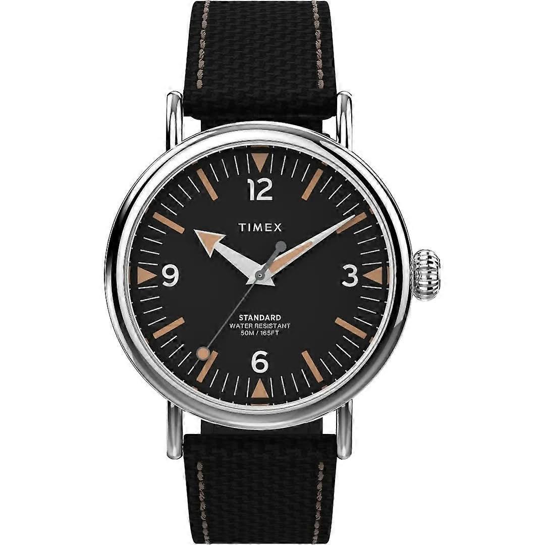 Timex Gents Waterbury Black Watch TW2V44000 Discover the elegance of the Gents Waterbury Black Watch TW2V44000, an exquisite timepiece that marries classic craftsmanship with modern design. This watch is not just an accessory; it is a statement piece that embodies sophistication. With its refined and military-inspired aesthetics, the TW2V44000 is designed for the discerning gentleman who appreciates the finer things in life. Collection - WaterburySub Collection - Waterbury StandardGender - GentsCase Material - Low Lead BrassCase Colour - Silver-ToneCase Shape - RoundCase Dimension - 40 mmCase Height - 9.5 mmCrystal/Lens - Mineral GlassDial Colour - BlackAttachment Material - FabricAttachment Type - Two- Piece Quick ReleaseAttachment Colour - BlackAttachment width - N/AN/AAttachment Buckle/Clasp Type - Two- Piece Quick ReleaseAttachment Buckle/Clasp Material - MatteMechanism Type - Quartz Analog (Indiglo/El)Water Resist - 50 metersProduct weight (grams) - N/AWarranty - 1 year The 40mm silver-tone case houses a striking black dial, merging style and functionality. The dial features unique hour and minute hands that evoke a sense of heritage, reflecting traditional elements from Timex's rich history. The partial Arabic numerals combine with smaller minute markers, providing an appealing contrast and ensuring optimal readability. Water Resistance: With a water resistance rating of 50 meters, this timepiece is perfect for both everyday wear and occasional swimming, making it a practical choice for any lifestyle. Interchangeable Straps: The watch features a two-piece quick-release strap that allows effortless customization. Whether it’s the elegant black leather or the sturdy woven fabric, you can switch straps to match your outfit or mood. This watch is meticulously crafted using low lead brass, ensuring durability without compromising on style. The mineral glass lens offers strong protection against scratches, providing clarity and ensuring that the watch remains as pristine as the day you received it. One of the standout features of the Waterbury Black Watch is its traditional oversized “onion” crown. This classic design element harks back to the early 1900s pocket watches, adding an authentic touch to this contemporary piece. The quartz analog mechanism, complete with Indiglo technology, guarantees precise timekeeping, day or night. Every Gents Waterbury Black Watch TW2V44000 comes beautifully packaged in Timex's signature gift box, accompanied by a certificate of authenticity. Enjoy peace of mind with a one-year warranty that covers manufacturing and material defects. Elevate your watch collection with this timeless piece that seamlessly blends heritage and modern luxury.