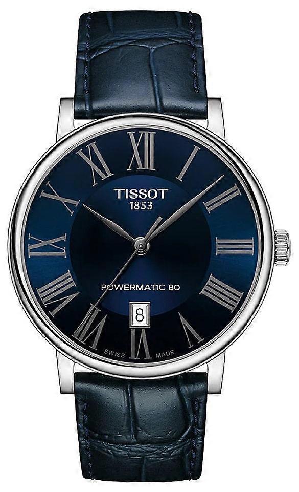 Tissot Carson Premium Powermatic 80 Men's Watch - Blue Dial, Stainless Steel Case, Blue Leather Strap