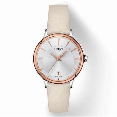 Tissot Odaci-t Women's Watch - Silver Dial, Rose Gold Pvd Bezel, Cream Leather Strap