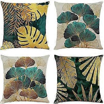 Title: Set of 4 Decorative Cushion Covers, Petrol Gold Ginkgo Design, 45x45cm