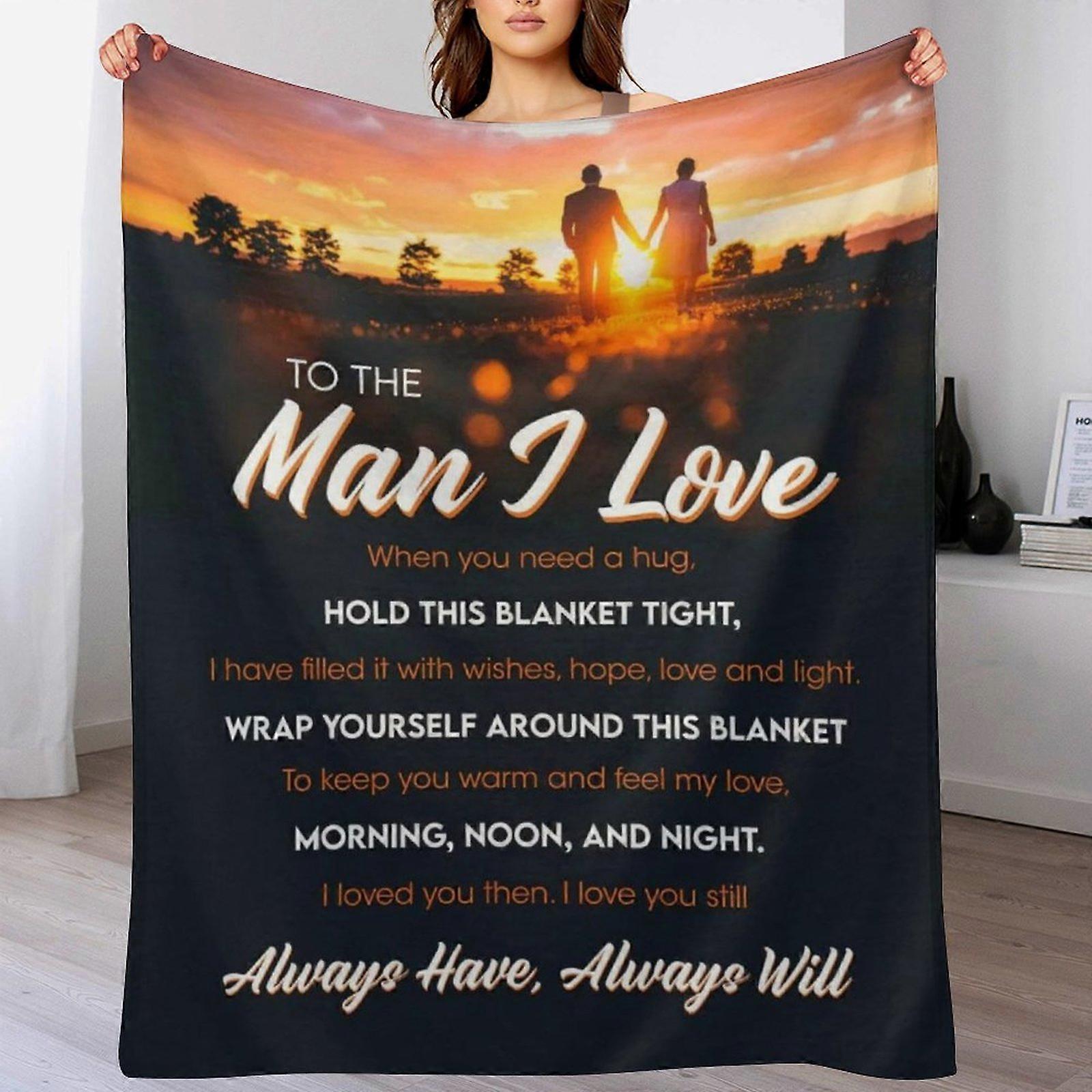 To The Man I Love Quote Flannel Blanket - Romantic Message & Sunset Couple Print | Warm Hug Throw for Valentine’s Gift | For Couples & Romantic Home U
