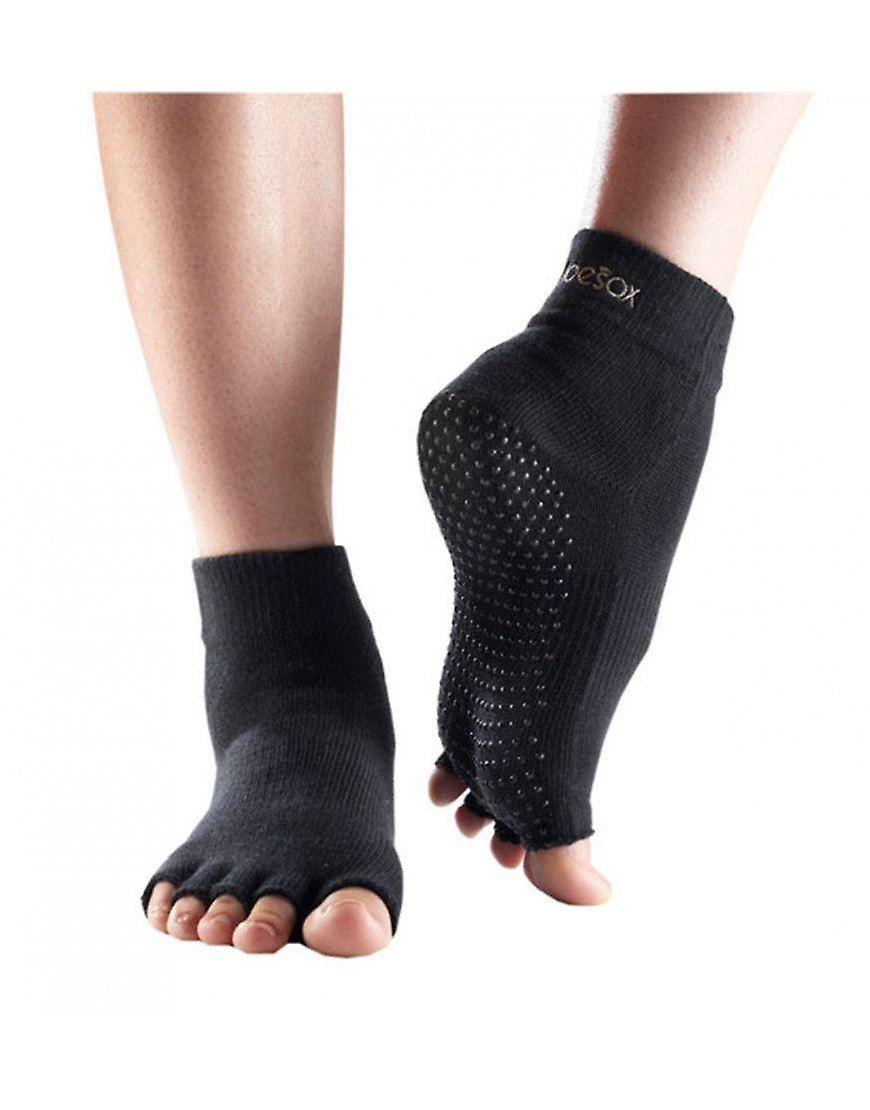 ToeSox Half Toe Ankle Pilates Yoga Dance Non Slip Grip Exercise Socks Half-Toe Socks with Non-Slip Grip are great for yoga, Pilates, dance & martial arts, as well as any other barefoot activity. No longer do you have to worry about slipping when doing exercises. Now, with Half-Toe Sox, you have that extra grip and added control. The Half-Toe style have the same patented non-slip grip as the full ToeSox but are toeless. Machine washable. Wash inside out in gentle cycle. Line dry or low heat in dryer. No bleach or iron. Made from Eco-Friendly organic cotton Product Features Patented non-slip grip keeps your feet in place Half toe design lets toes touch surface for a more barefoot experience Five toe design allows toes to move and spread naturally Hygienic alternative to bare feet Arch support band gently lifts and supports Fitted heel keeps sock in place to eliminate bunching and twisting Made with organic cotton Unisex sizing