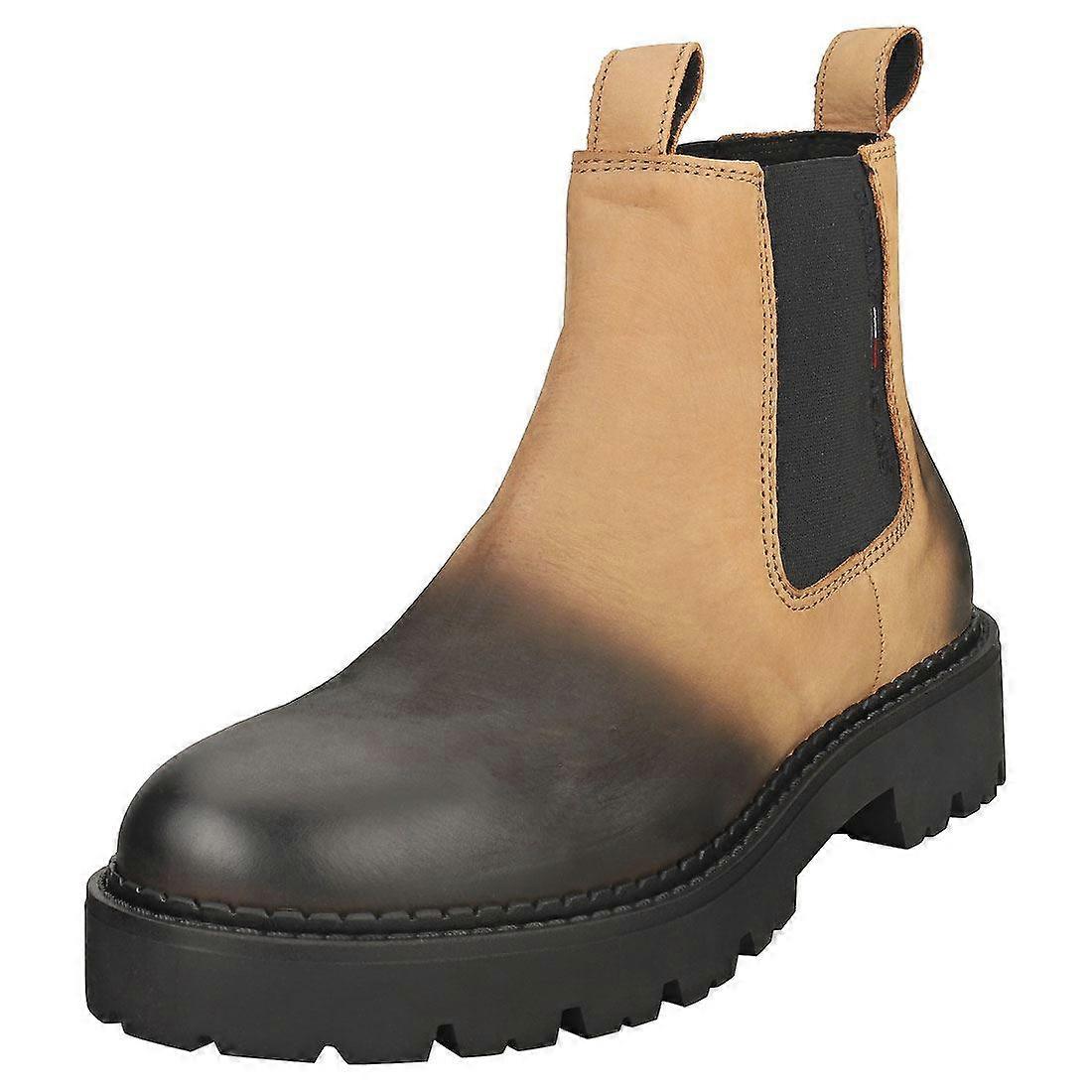 Tommy Jeans Brushed Chunky Mens Chelsea Boots in Cracked Earth Black