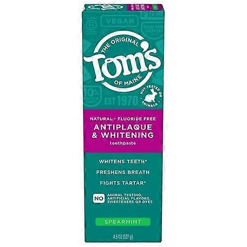 Tom's Of Maine Antiplaque And Whitening Fluoride Free Toothpaste Spearmint ,4.5 Oz (Case Of 6)