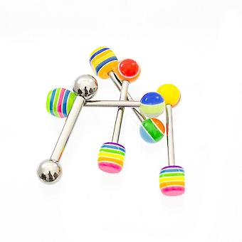 Tongue barbells with striped octagon balls pack of 4 14g plus free 10g barbells