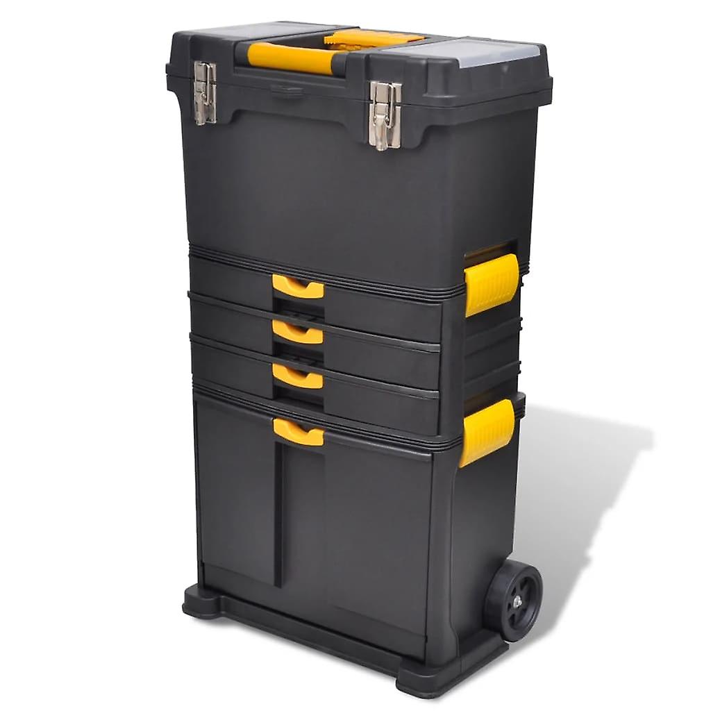 Dieser hochwertige Werkzeugtrolley, ausgestattet mit 2 Rollen und einem teleskopischen Griff, ist die perfekte Wahl, um Ihre Werkzeuge und Geräte geschützt zu transportieren und an einem Ort ordentlich aufzubewahren. Mit einem oberen Werkzeugkoffer, einem unteren Koffer und einem Mittelteil mit 3 Schubladen bietet Ihnen dieser robuste Werkzeugtrolley viel Stauraum und hilft Ihnen dabei, Ihre Werkzeuge in gutem Zustand zu halten und bis zur zukünftigen Verwendung sicher aufzubewahren. Sowohl der obere als auch der untere Werkzeugkoffer sind groß genug, um auch größere Werkzeuge aufzunehmen, während die mittleren 3 Schubladen kleinere Werkzeuge, wie Schrauben und Muttern, ordentlich aufbewahren. Dank der seitlichen Schnappverschlüsse können Sie die Werkzeugkoffer von der Einheit einfach trennen, wenn Sie z.B. nur den oberen oder den unteren Koffer brauchen.Der aus hochwertigem Polypropylen gefertigte Werkzeugrolley hat eine hohe thermische Stabilität, ist korrosionsbeständig und belastbar sowie besonders langlebig. Dank des Teleskopgriffs kann der Werkzeug-Trolley einfach überall mitgenommen werden. Es ist sicherlich ein großartiger Helfer, um Ihre Werkzeuge organisiert und an einem Ort sicher aufzubewahren. Material: Polypropylen Farbe: Schwarz, GelbZwei RollenNettogewicht: 8,5 kgAbmessungen: 46 x 28 x 82 cmGesamthöhe beim Herausziehen des Griffs: 105 cm