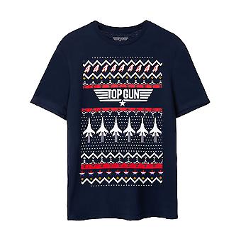Top Gun Mens Short Sleeved T-Shirt Blue Christmas Fairisle