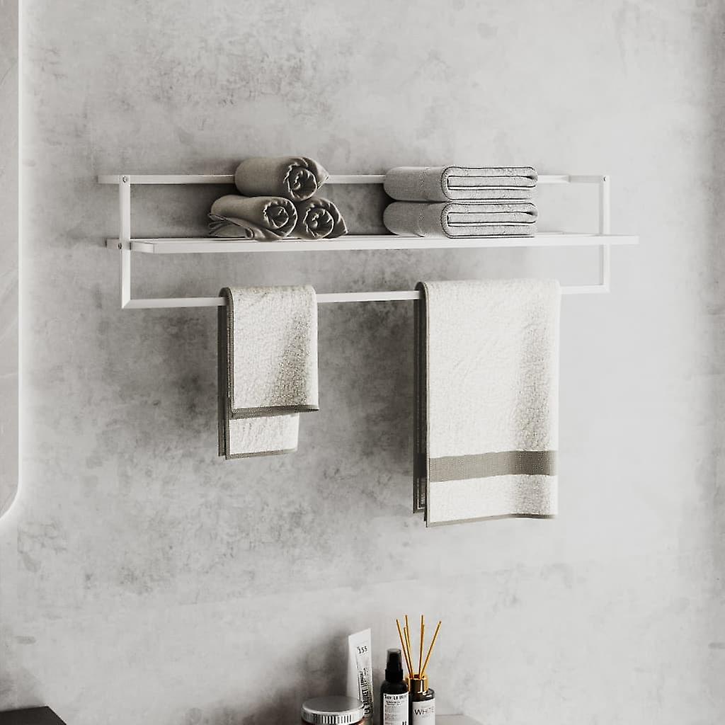 Optimiere den Platz in deinem Badezimmer und verleihe ihm einen stilvollen Look mit diesem Handtuchhalter Erstklassiges Material: Der Eisenrahmen sorgt für Robustheit und Stabilität.Wandmontage: Der Handtuchhalter lässt sich an der Wand befestigen und ist dadurch platzsparend. Auf diese Weise kannst du deine Bodenfläche maximieren und für Ordnung sorgen.Meister der Aufbewahrung: Mit einer Ablage versehen, bietet das Wandregal reichlich Platz für Handtücher und sorgt so für Ordnung im Bad. Farbe: WeißMaterial: EisenAbmessungen: 95 x 25 x 22 cm (B x T x H)Zusammenbau erforderlich: Ja